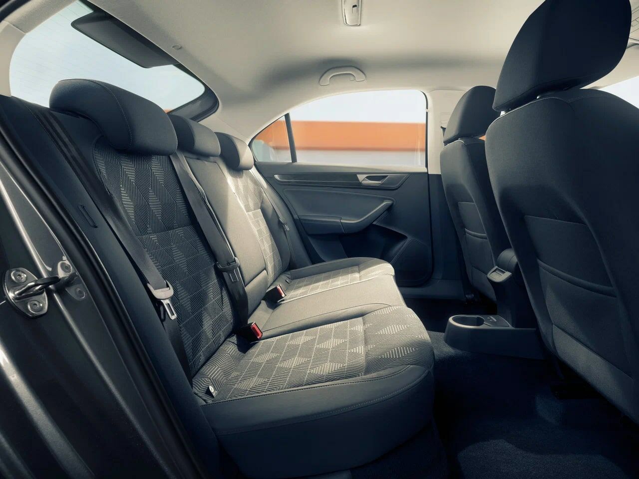 Заднее сиденье 3-местное, спинка ассиметрично разделенная, складная Подстаканник спереди Центральный подлокотник сзади