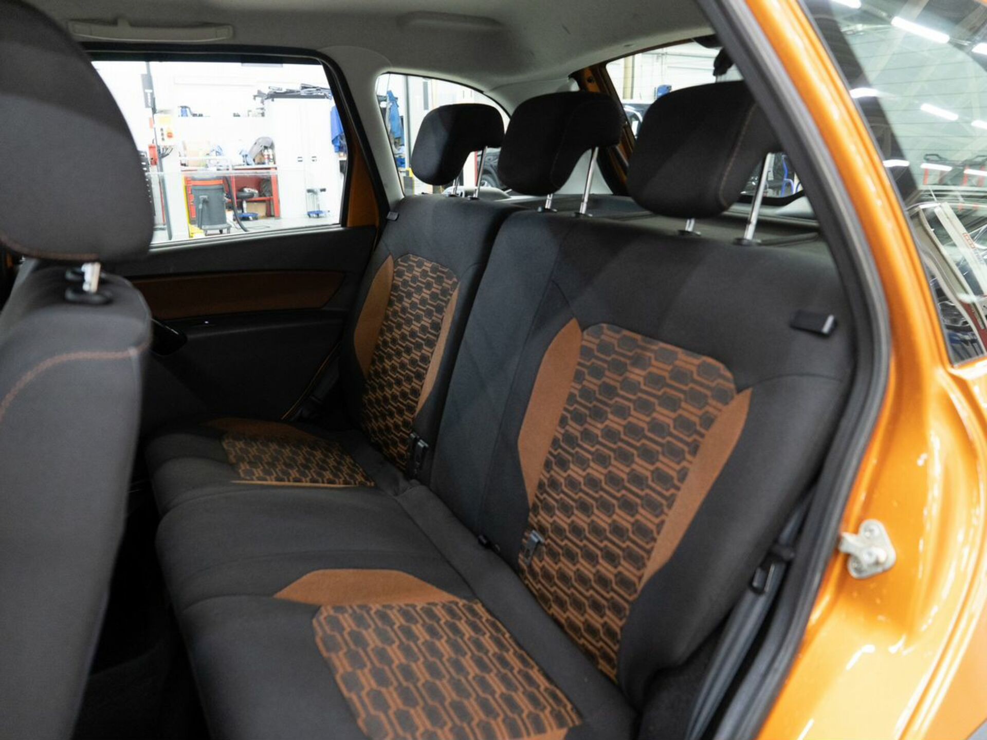 • Обивка сидений комбинированная ткань/экокожа. Цвет (по выбору) оранжевый/серый